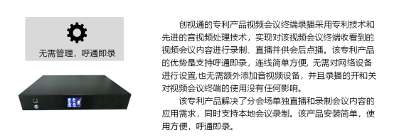 針對可能出現的問題,創視通將視頻會議終端錄播和會議室錄播服務器功能融合為一體,研發了會議終端錄播MRS3800,既可滿足視頻會議終端錄制需求,也能滿足會議室錄制需求。